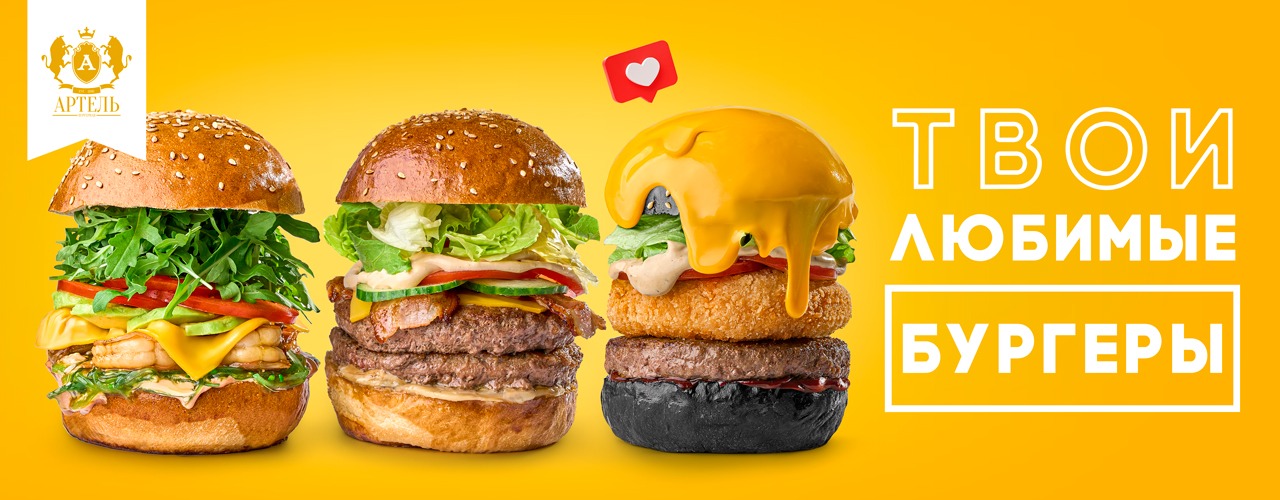 Черная булка , котлета из мраморной говядины , сыр чеддер , бекон , огурец свежий , огурец соленый , томат , перец болгарский , лист салата , соус фирменный барбекю, соус цезарь , ...